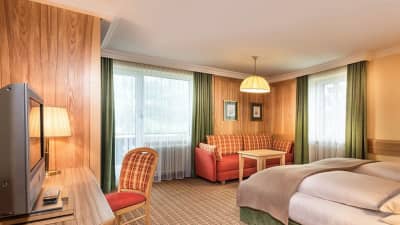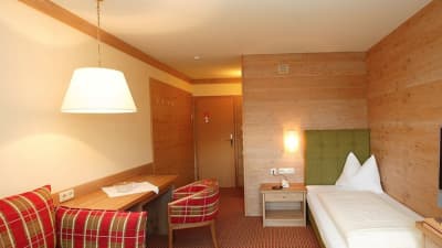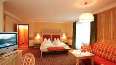 The hotel itself is furnished in an Alpine style. Rooms are spacious and bright with bathrobes for each guest to ensure your maximum comfort and relaxation. Traditional Austrian cuisine as well as international dishes are served in the hotel’s restaurant and there are many healthy options for guests to choose from too.