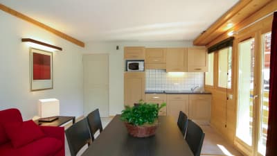 The apartments sleep up to 6 guests and include a bedroom, a living area with sofa bed, and a sleeping alcove with bunk beds. Each comes with a practical kitchenette equipped with a hob, microwave/grill, fridge and dishwasher—ideal for relaxed self-catering days.