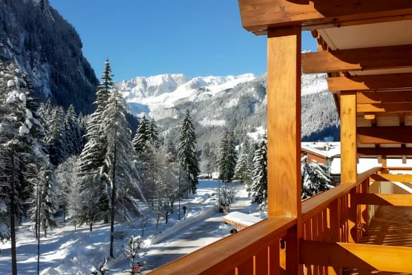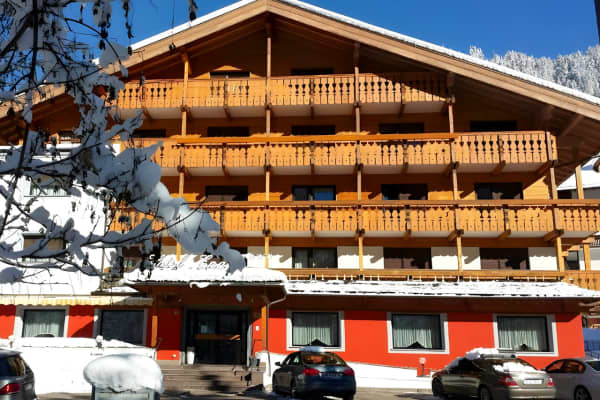 Hotel Engel is a small, friendly 3-star in a quiet spot on the edge of Canazei, just a short walk from the village centre. It has a classic alpine look and feel, with lots of wood and a relaxed, family-run atmosphere. Rooms are simple and comfortable, many with balconies and mountain views, and come with TV and Wi-Fi – a straightforward base to sleep well and recharge between ski days.